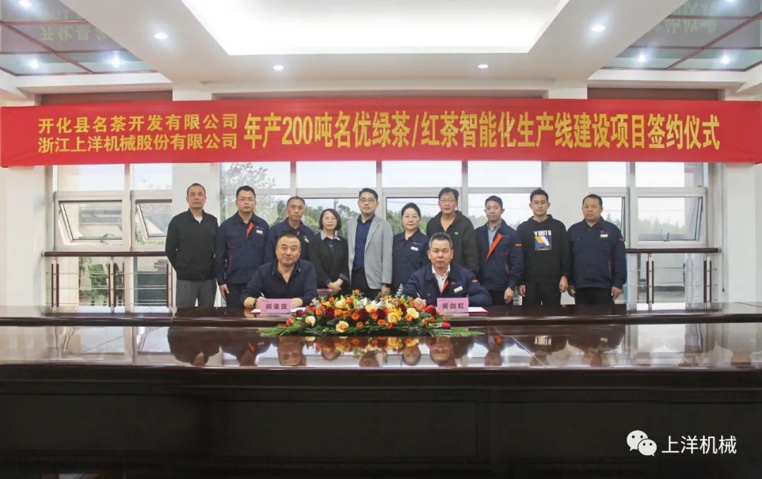 更多內(nèi)容10月24日,開化名茶開發(fā)有限公司與上洋機械正式簽約“年產(chǎn)200噸名優(yōu)綠茶/紅茶智能化生產(chǎn)線”建設項目。