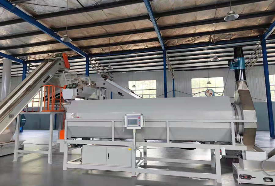 機組組成:本機組由上料輸送機、滾筒式炒干機、(振動)輸送機、計量儲料斗、機組集成控制系統(tǒng)組成。